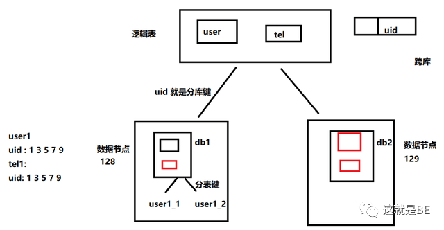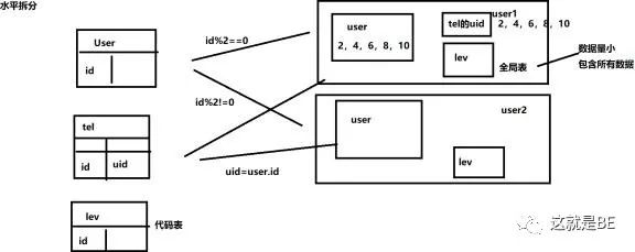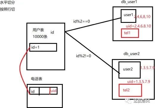 ① 按照ID取模:对ID进行取模,余数决定该行数据切分到哪个表或者库中。