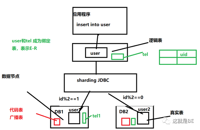 *逻辑表*:水平拆分的数据库(表)的相同逻辑和数据结构表的总称。 *真实表*:在分片的数据库中真实存在的物理表。 *数据节点*:数据分片的最小单元。由数据源名称和数据表组成。 *绑定表*:指分片规则一致的主表和子表。例如:t_order 表和t_order_item 表,均按照order_id 分片,则此两张表互为绑定表关系。绑定表之间的多表关联查询不会出现笛卡尔积关联,关联查询效率将大大提升。 *广播表*:指所有的分片数据源中都存在的表,表结构和表中的数据在每个数据库中均完全一致。适用于数据量不 大且需要与海量数据的表进行关联查询的场景,例如:字典表。