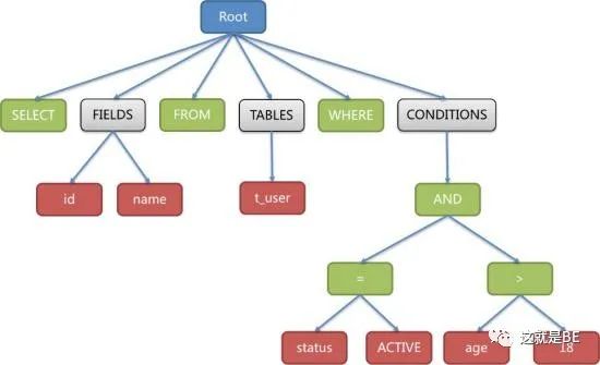 SQL语句经过解析引擎的词法解析、语法解析,形成语法树。
