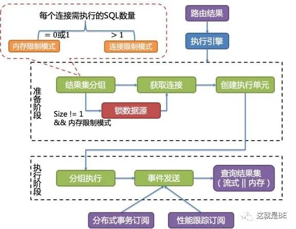 ShardingSphere采用一套自动化的执行引擎,负责将路由和改写完成之后的真实SQL安全且高效发送到底层数据源执行。执行引擎的目标是自动化的平衡资源控制与执行效率。执行引擎分为准备和执行两个阶段