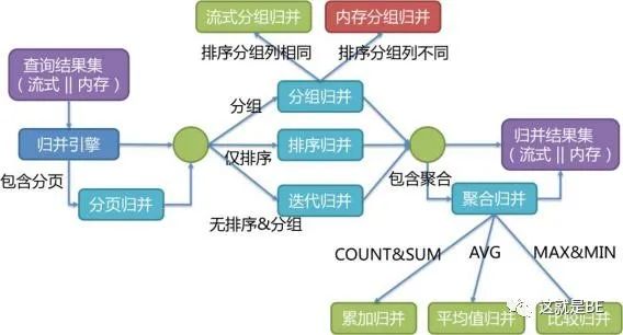 将从各个数据节点获取的多数据结果集,组合成为一个结果集并正确的返回至请求客户端,称为结果归并。 ShardingSphere支持的结果归并从功能上分为遍历、排序、分组、分页和聚合5种类型,它们是组合而 非互斥的关系。