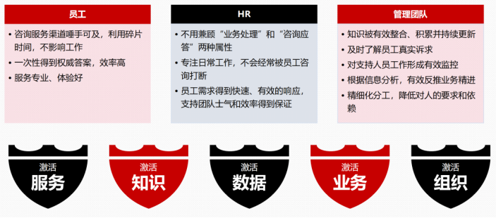 在HR层面,HR不用兼顾“业务处理”和“咨询应答”两种属性,能够释放精力,专注日常工作,不会经常被员工咨询打断,同时员工需求得到快速、有效的响应,团队士气和效率也能够得到保证。