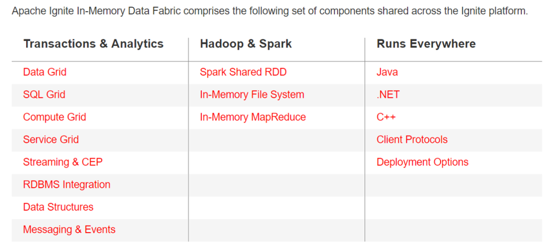 汇总一下,Apache Ignite的功能特性: