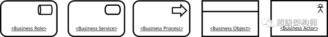 无论您是为解决方案架构创建图表还是试图描述完整的企业架构,最好的方法都是从业务层开始。第一个图表将用于通过定义角色、服务、流程和数据来设置架构描述的范围。为此,请创建一个列表,然后使用下面的前四个元素并将它们展开在您的第一张幻灯片上。为了清楚起见,我留下了<标准名称>,但您应该使用对您有意义的名称相应地标记元素。