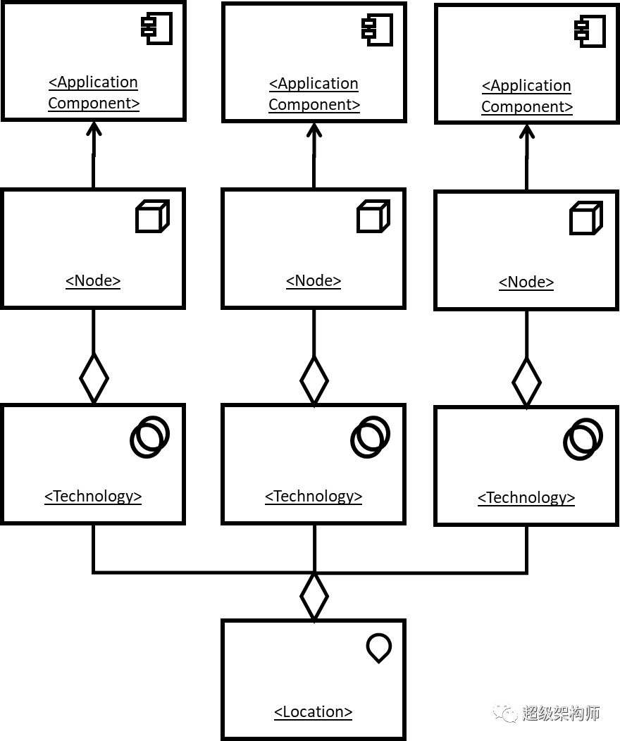 在描述了业务服务的功能之后,我们需要开始设计具体的操作环境。位置为我们提供了所需网络架构的提示。技术是指托管堆栈,节点是实际的应用程序驱动环境。可以有多层节点、技术和位置,以便我们可以根据需要尽可能详细地描述地理分布要求、虚拟化和容器托管。