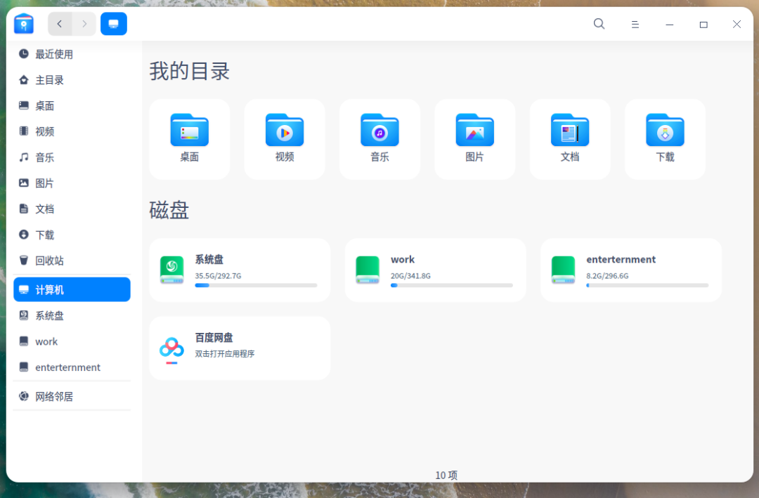 文件管理器(相当于windows的我的电脑),和win里差不多,但更简洁好看。