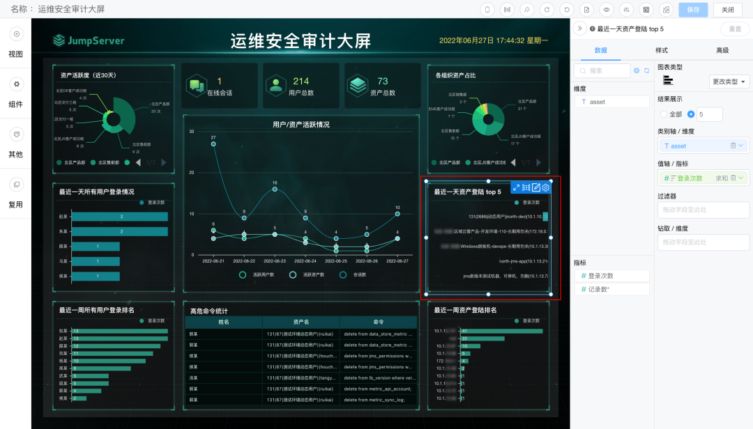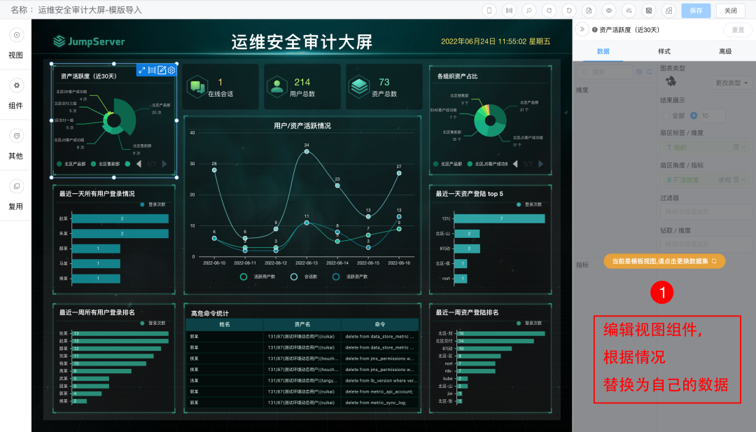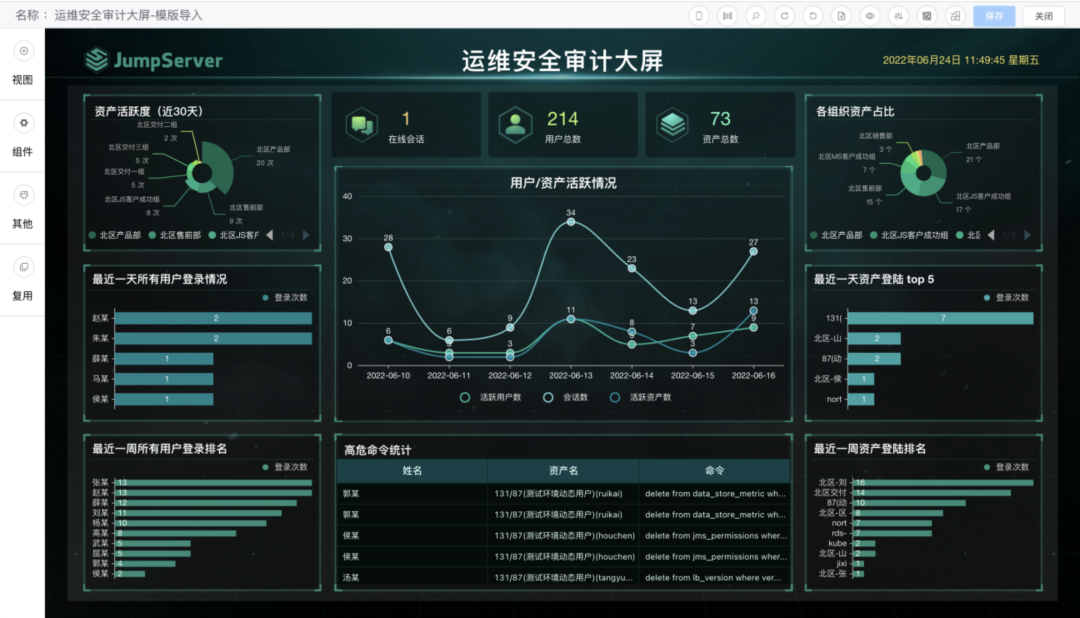 本月为大家推荐的精选模板是JumpServer安全运维审计大屏。