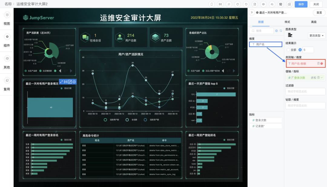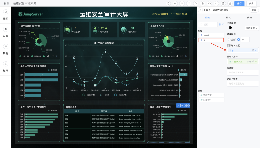 经过上述步骤,大家就可以得到自己的运维安全审计大屏了。