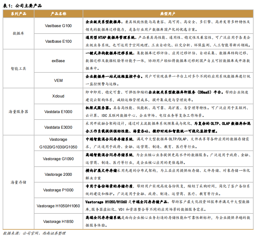加强数字化自主生态建设,完成多平台适配融合。公司持续推动产品性能提升,同时加强与上下游产品的兼容适配,为数字化自主生态体系建设贡献力量。目前,公司自主研发的 Vastbase 数据库已完成与主流国产芯片、操作系统、中间件、公有云平台及多种应用软件兼容适配,并成功入围北京市属国有企业软件正版化产品目录。公司凭借扎实的国产数据库技术实力以及完备的“产品+服务”体系,为客户数字化转型升级赋能增效。