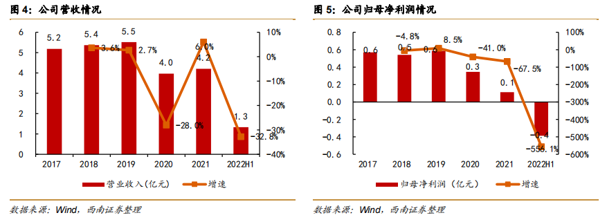 公司2022年上半年实现营业收入1.3亿元,同比下降32.8%;实现归母净利润-0.4亿元,同比下降556.1%。