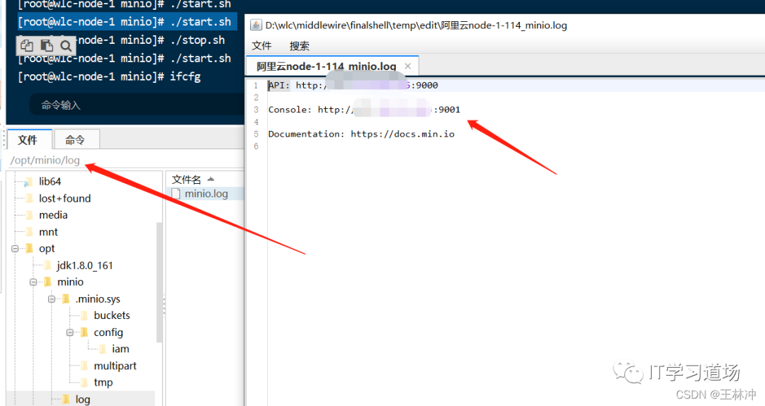 > opt/minio/log/minio.log 2>&1 & 日志输出地址