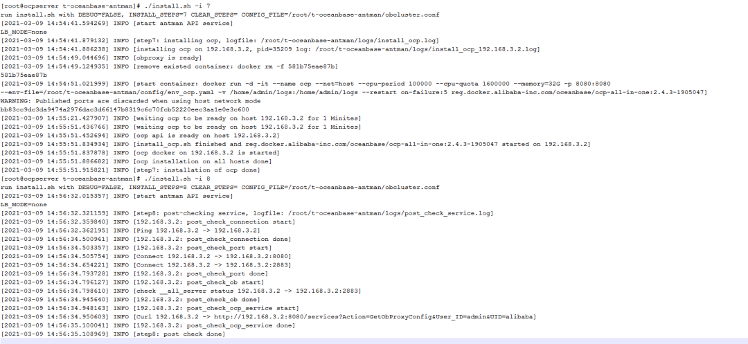 主要是OCP的IP地址,root密码,admin用户的密码,还有OB、OCP、OBProxy对应的docker文件已经docker的TAG(如果不知道TAG,可以使用dockerload –i xxx.tar)查看