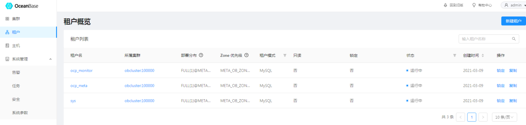 租户创建完成。