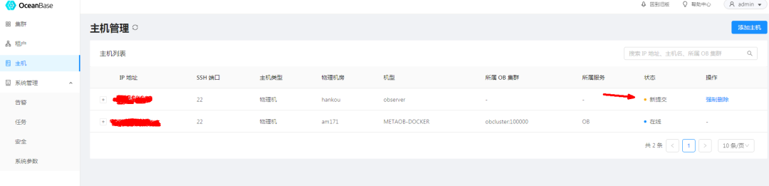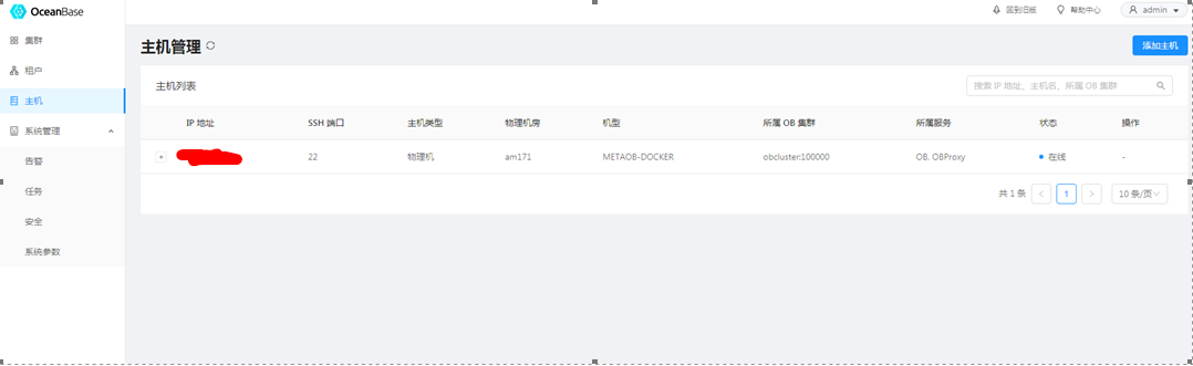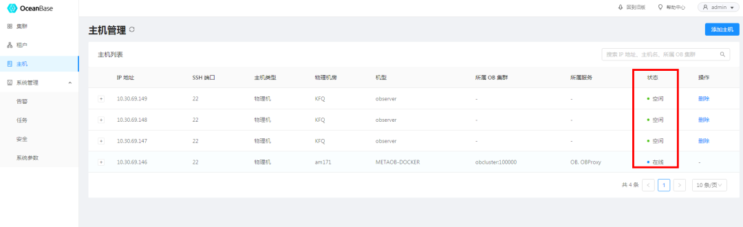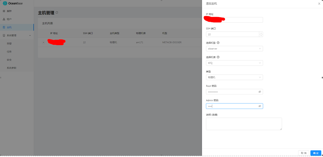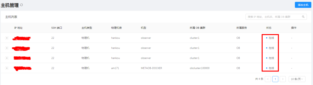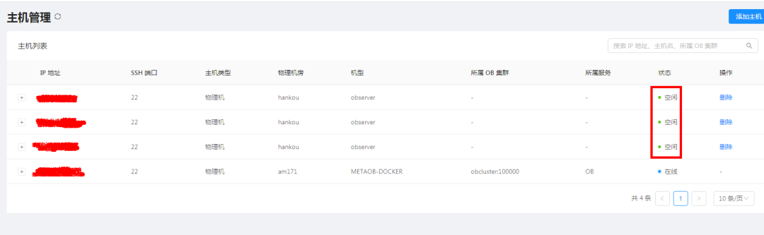 首先添加主机,将 3台 oceanbase服务器主机添加进来。