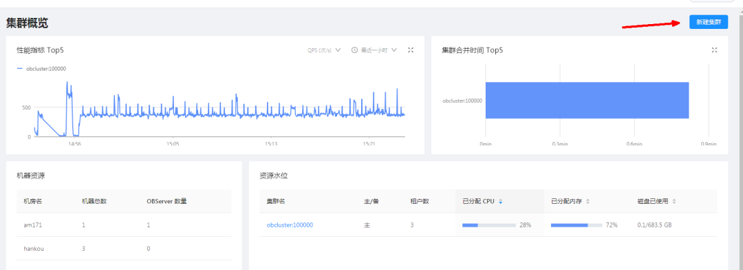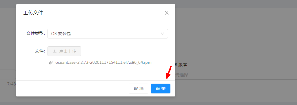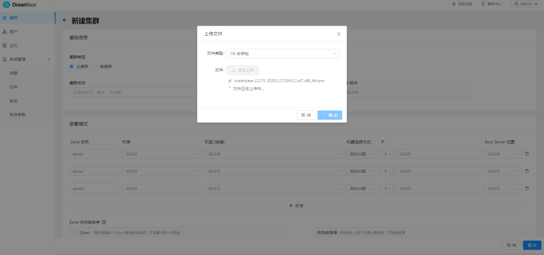 新建集群,这里OB的版本是要上传的。