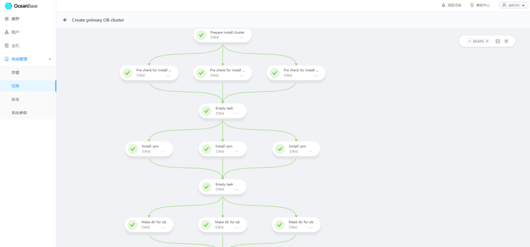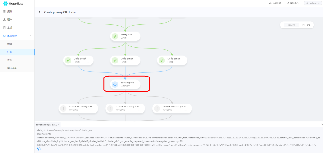 将三个observer服务器全部加进来,直到状态变为空闲。可以点击任务按钮,观看进度。