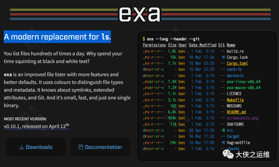 也可以参考官网的介绍,exa在官网的介绍是A modern replacement for ls.