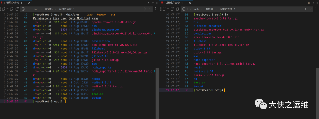 exa和ls的简单对比图