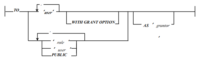 • 将任何数据库特权(包括 DBA 特权)授予其他用户