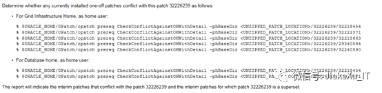 $ORACLE_HOME/OPatch/opatch prereqCheckConflictAgainstOHWithDetail -phBaseDir home/oracle/soft/32126842/32226239/32218454$ORACLE_HOME/OPatch/opatch prereqCheckConflictAgainstOHWithDetail -phBaseDir home/oracle/soft/32126842/32226239/32222571