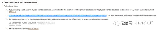 如果是单实例环境,需要停实例和监听,然后使用 opatch apply 打补丁,当为 RAC 时可直接 opatchauto apply。