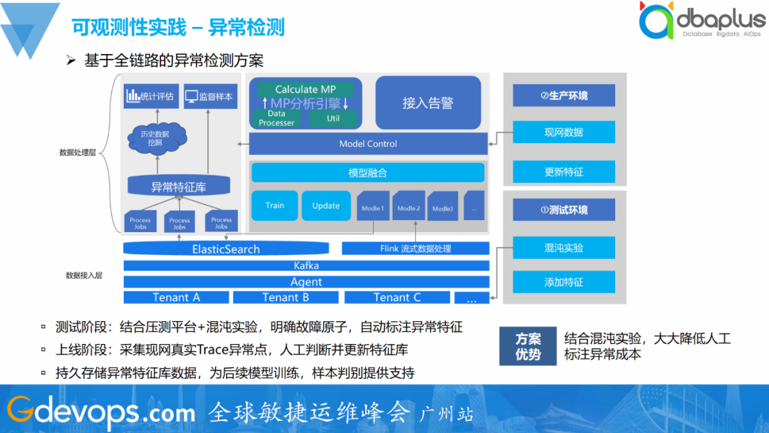 但是再完备的测试环境也无法模拟线上所有问题,比如一些未知的问题我们历史上从未碰到过。所以会在第二阶段(即将上线),我们会去采集现网真实的数据做验证,不断地扩充跟修正特征模型,使模型越来越精准,但是生产环境时则不可避免地需要依赖人工去打标签。