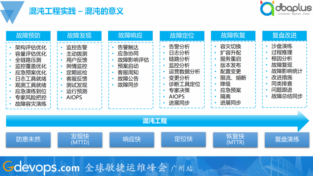 针对MTBF,我们希望是越长越好,要达到这个目标,以往我们在业务上线之前,这部分前置工作做得很少,通常是等发生问题后才被动地去做定位,所以我们尽可能地把很多能力前置,根据当前我们面临的实际情况,我们认为现阶段混沌实验&全链路压测是首要建设的能力。