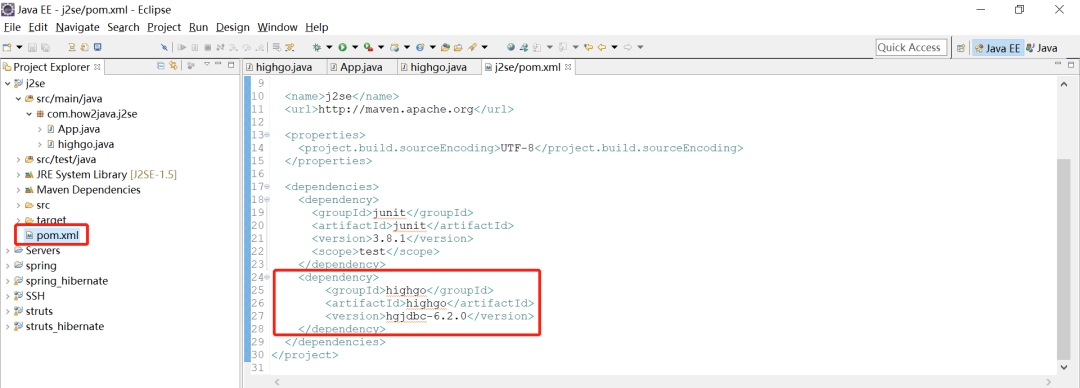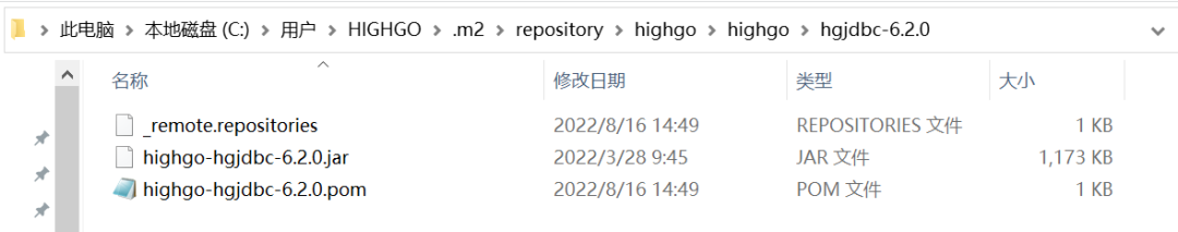 这样就把瀚高驱动包导入了maven仓库,接下来只需要在项目中引入就行。