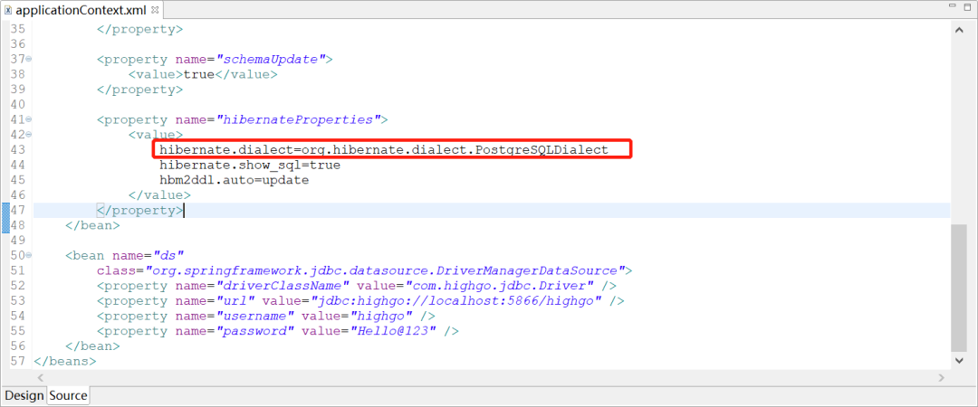 如使用ssh框架,则需要找到applicationContext.xml文件把Hibernate的方言修改为: