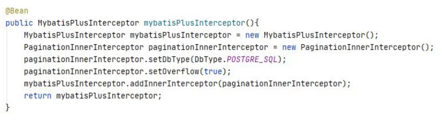 如使用ssm框架mybatisplus的分页插件PaginationInterceptor,则需要找下如下的配置类进行配置:
