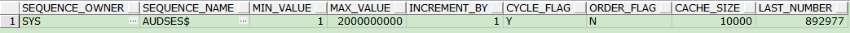 1SELECT * FROM DBA_SEQUENCES D WHERE D.SEQUENCE_NAME ='AUDSES$';