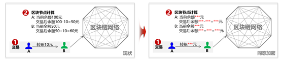 目前金融转账交易场景中对于隐私保护已经越来越重视,隐私也成为区块链急需解决的一个重要问题。那基于如下问题, A向B转账10元,需要区块链节点记账,但是不想让区块链节点知道交易金额以及最新余额,也是金融场景中一个非常常见的问题。