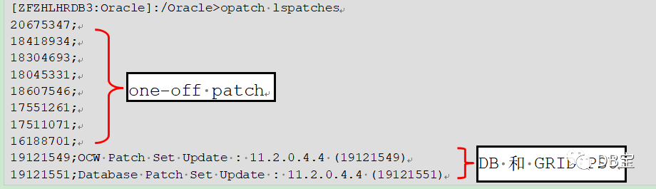通过命令opatch lspatches可以看到安装的PSU版本,如下例子即安装了11.2.0.4版本的PSU4。