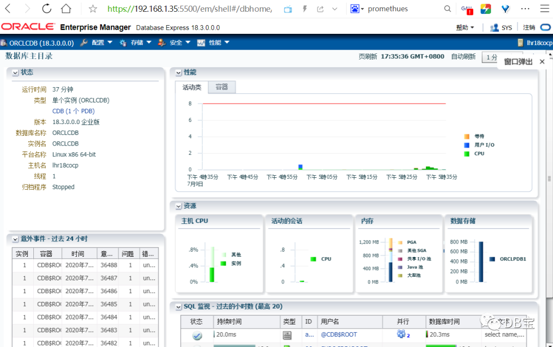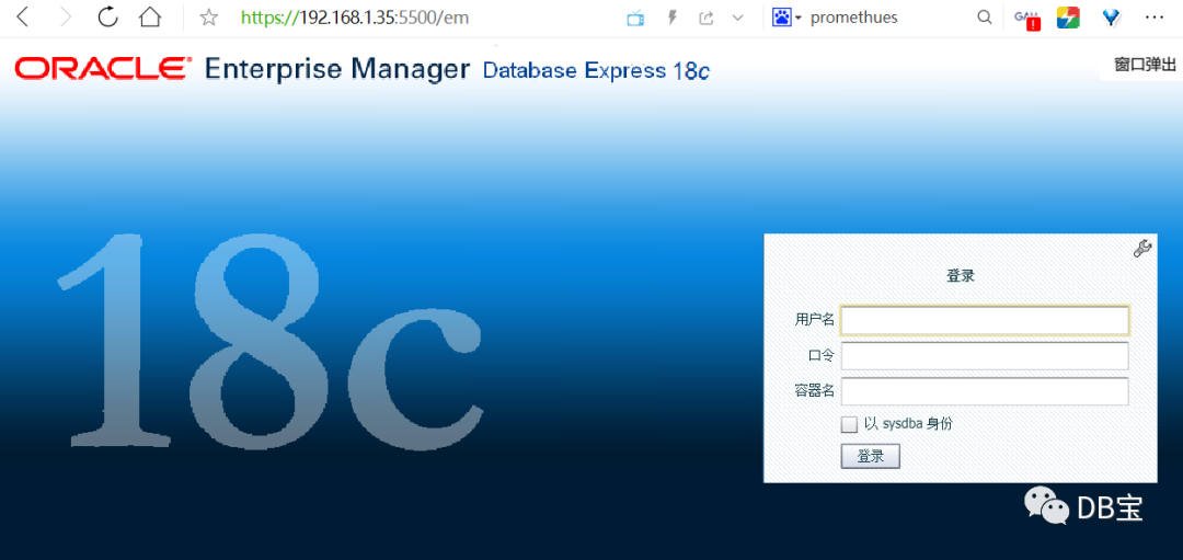 这个镜像默认配置了EM,端口为5500,所以EM的访问地址为:https://192.168.1.35:5500/em