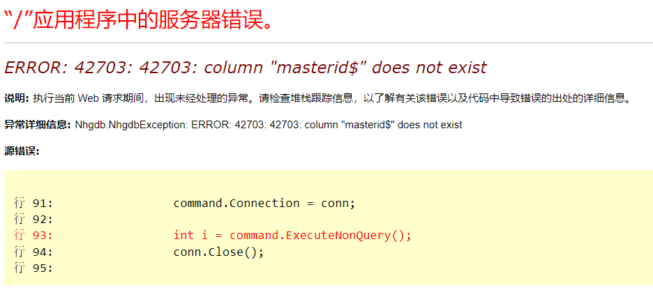 Nhgdb.NhgdbException:“ERROR: 42703: 42703: column "masterid$" does not exist”
