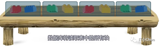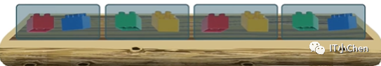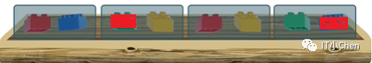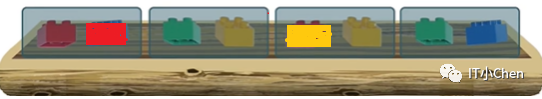 下面用不同颜色的积木表示数据,存放积木的盒子表示数据块。