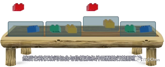 红色积木,分布在不同的盒子里。在索引扫描查询红色积木时,需要查询两个盒子,即2次I/O。