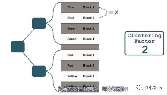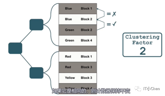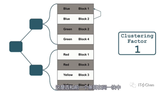 当前索引项对应的行与上一个索引项对应的行在同一块中,还是不同的块中?