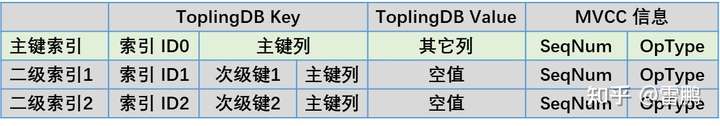 其中索引ID用来区分不同的 Table(primary index)及次级索引,是个 32 位整数,所有整数都按 BigEndian 方式编码(从而整数的大小比较等效于 memcmp)。