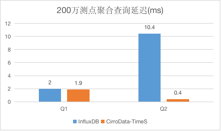 可以看到不管在6000测点还是在200万测点下,CirroData-TimeS查询延迟要比InfluxDB低很多。
