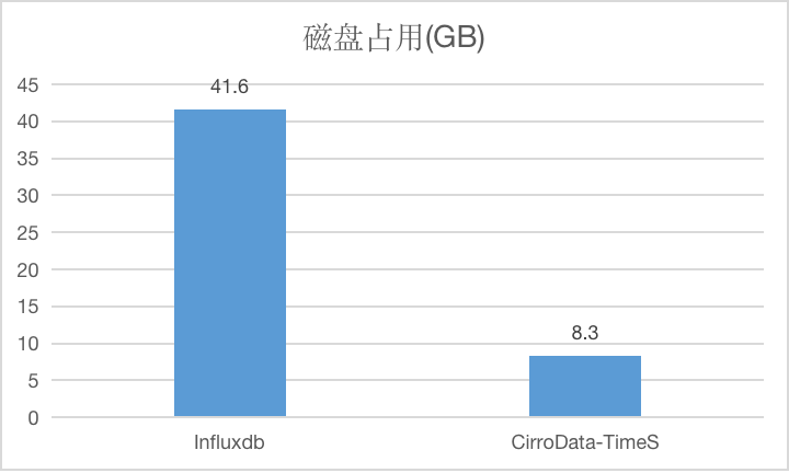 如下测试是对比CirroData-TimeS和InfluxDB的压缩比,每个点数据是12byte,总数据量大约为112GB,可以看到CirroData-TimeS是InfluxDB的5倍,CirroData-TimeS的压缩比可以达到13倍。