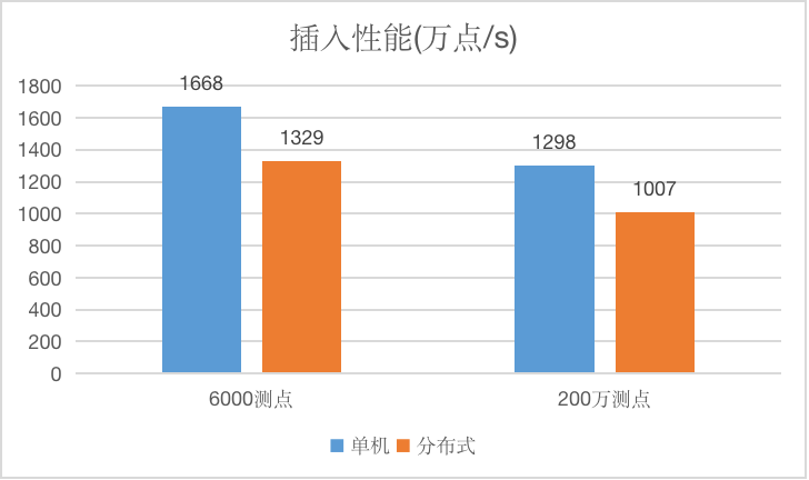 以上都是测试单机的性能,CirroData-TimeS不仅仅支持单机,也提供了基于raft协议的分布式高可用版本,如下是3节点3副本的分布式和单机性能对比。