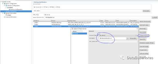RECOVER DATABASE '/dmdata/amber/dm.ini' UPDATE DB_MAGIC;
