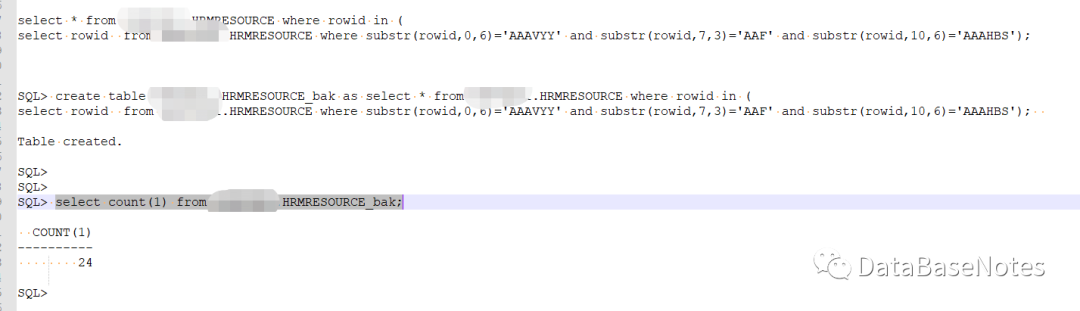 create table xxx.HRMRESOURCE_bak as select * from xxx.HRMRESOURCE where rowid in (