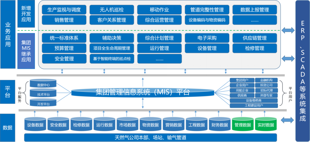 此外,系统还打通了与SAP的系统接口,覆盖组织机构管理、主数据管理、设备管理、预算管理、物资管理、费用管理,打造了江苏天然气MIS+ERP集成应用模式。