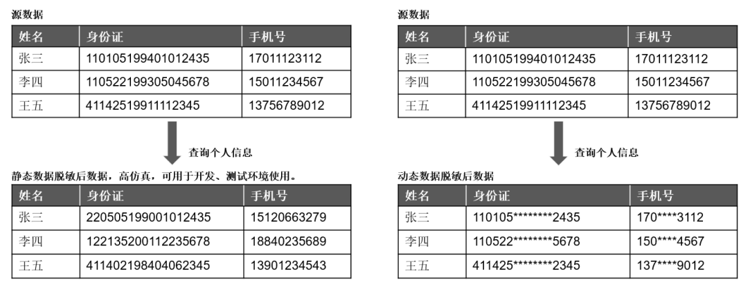图1:静态脱敏与动态脱敏