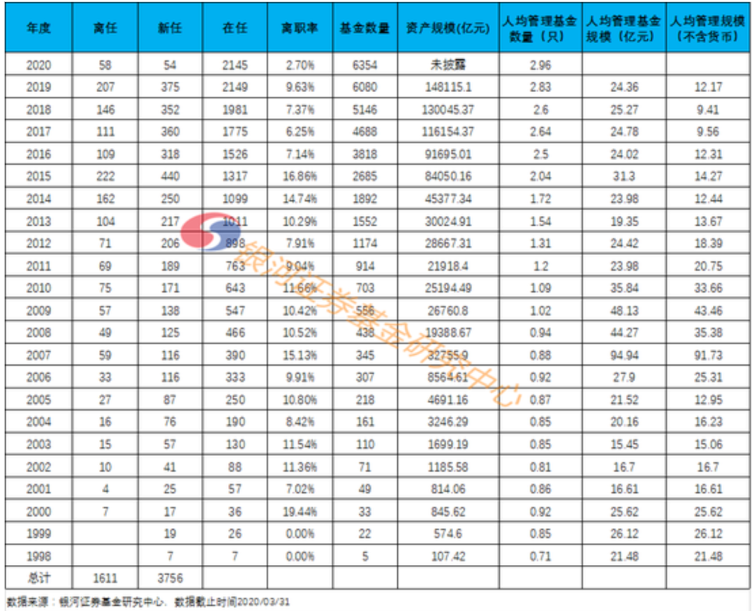 说回基金经理,这行收入这么高,那进入门槛如何呢?银河证券发布过一个基金经理调查,根据数据,2020年国内在职的基金经理人数是
