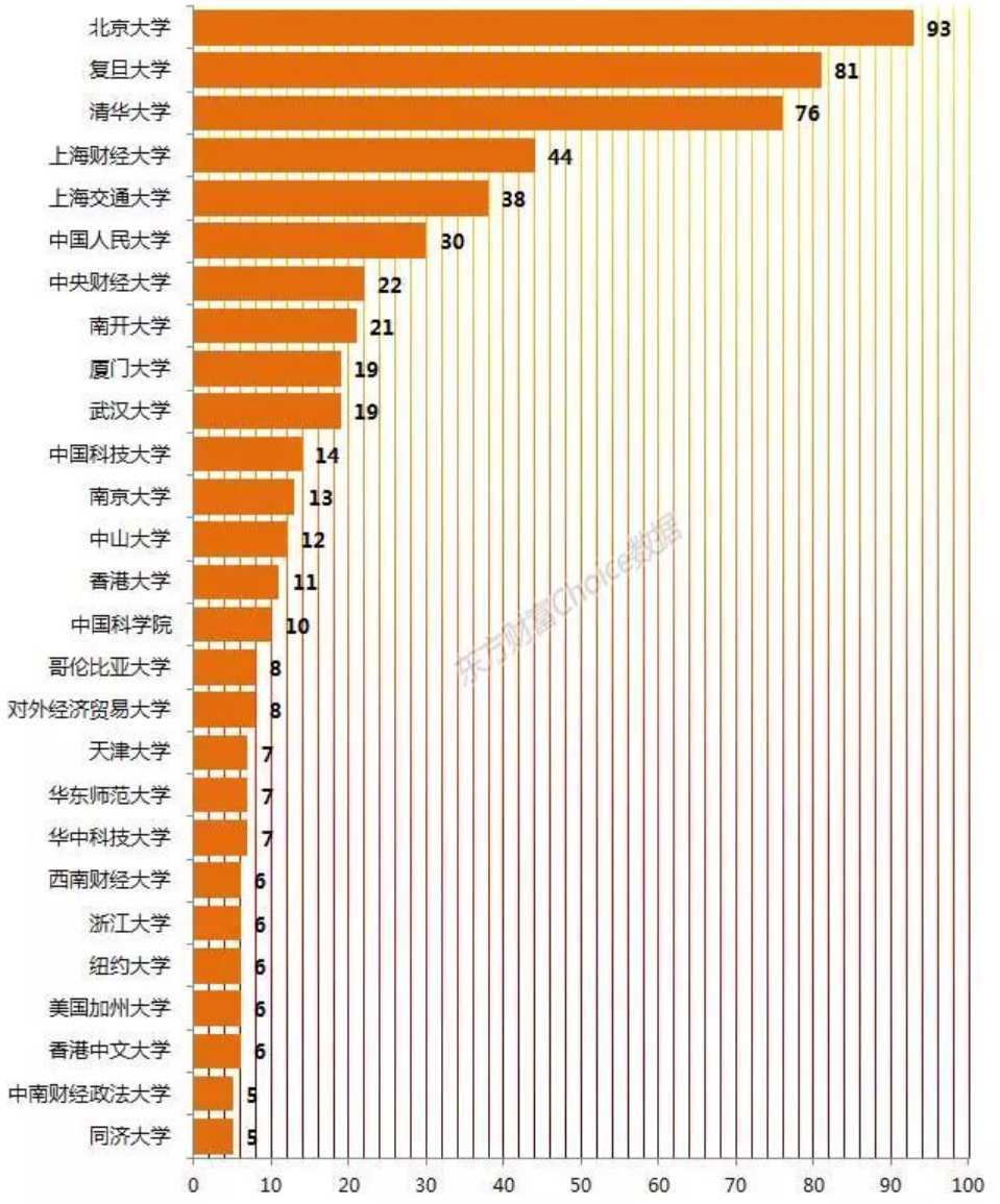 可以看到来自北大的基金经理人数最多,达到93人,占样本人数的