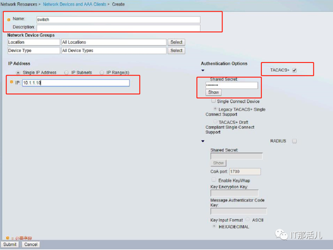 hwtacacs scheme loginacs /创建名为loginacs视图 primary authentication 10.1.1.1 key simple cisco //配置主认证服务器并填写TACACS服务预设密码 user-name-format without-domain //配置上传用户名为去后缀(不带域名模式) nas-ip 10.2.255.2 //配置发送报文源地址(交换机IP) domain loginacs //创建loginacs域 authentication login hwtacacs-scheme loginacs local //为login用户配置AAA认证方式为HWTACACS认证 authorization login local //授权login为本地用户 local-user admin class manage //创建本地yh账号 service-type ssh //服务类型ssh authorization-attribute user-role level-15 //授权level 15 authorization-attribute user-role network-operator //授权为管理员 domain default enable loginacs //修改默认域为loginacs(这步不做用户名后需加hwtacacs,例:admin@loginacs) line vty 0 63 authentication-mode scheme