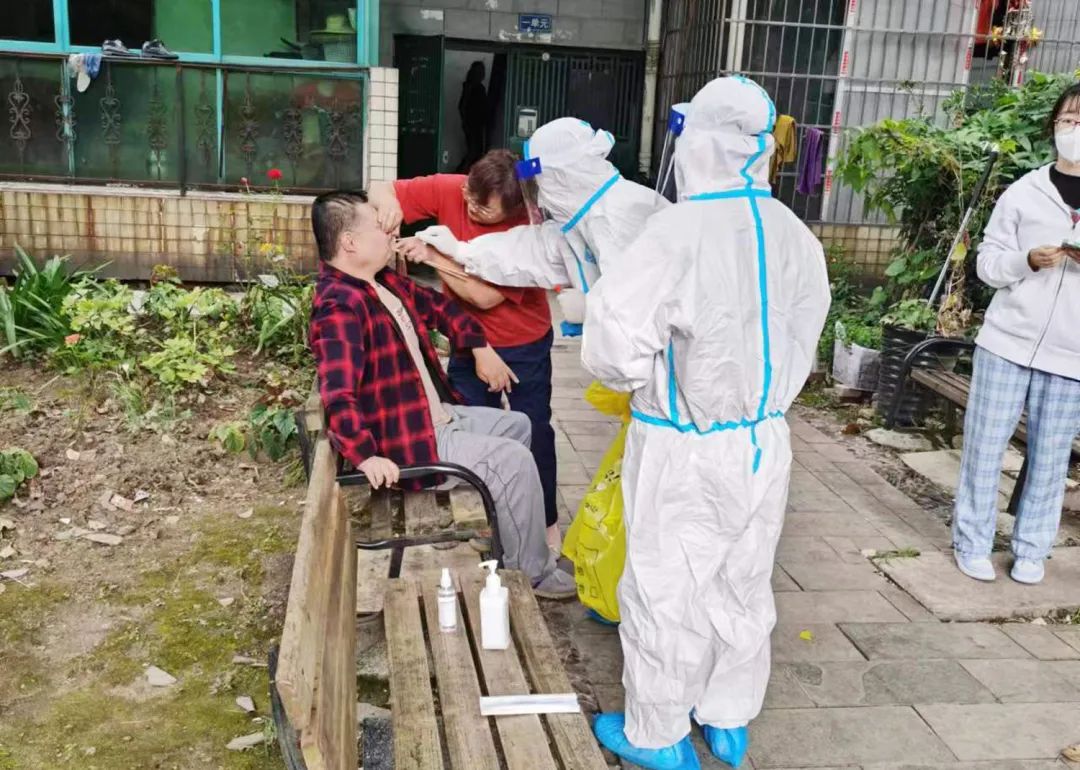 随着贵阳部分区域开展全员核酸,社区人手不足,易鲸捷员工加入了社区志愿者工作。他们和社区工作人员挨家挨户通知核酸时间,帮助居家老人、儿童完成核酸试管扫码,完善核酸检测小程序个人信息,为焦虑中的人们送去一份贴心服务和温暖。
